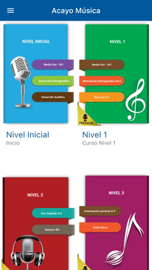 Acayo music is an application dedicated to learning vocal technique by levels where we work on the development of your voice as a singer working techniques such as: