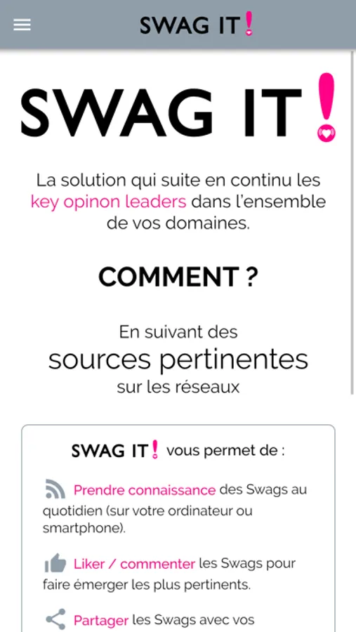 - Prendre connaissance des Swags au quotidien (sur votre ordinateur ou smartphone).