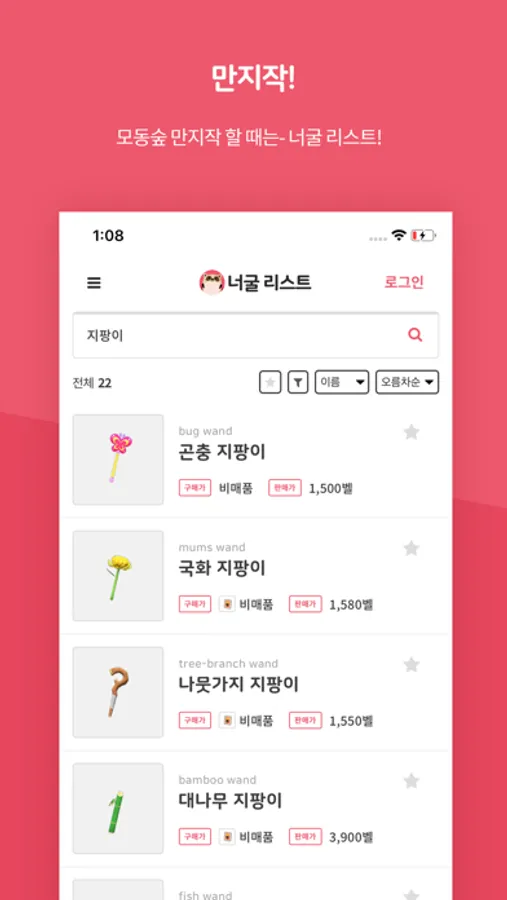이제 쉽게 너굴리스트로 모동숲 아이템을 구해보세요!