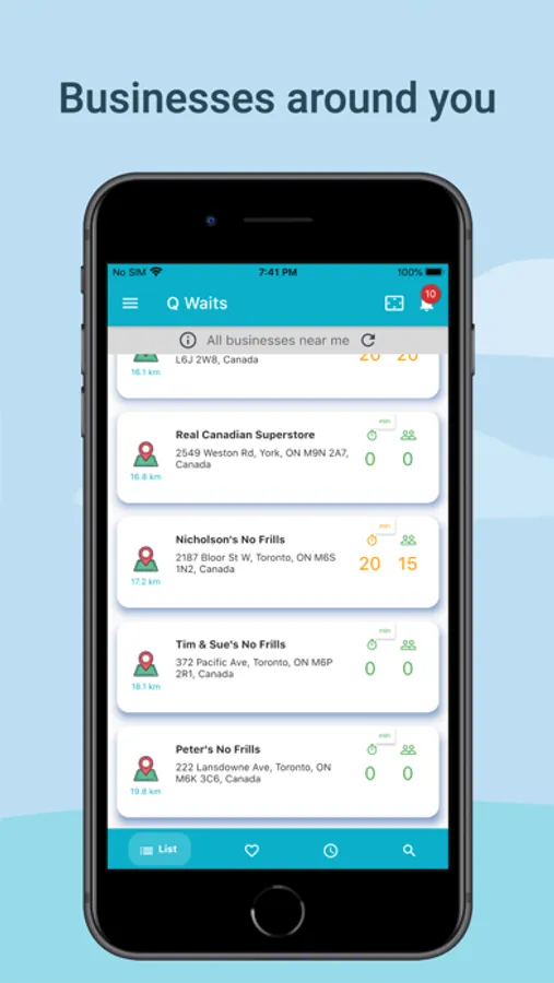 If a business is not registered for virtual check-in, you can still find all businesses and help your community by reporting wait times and queues. Go to the app, find the store from the list and report wait times and queues.