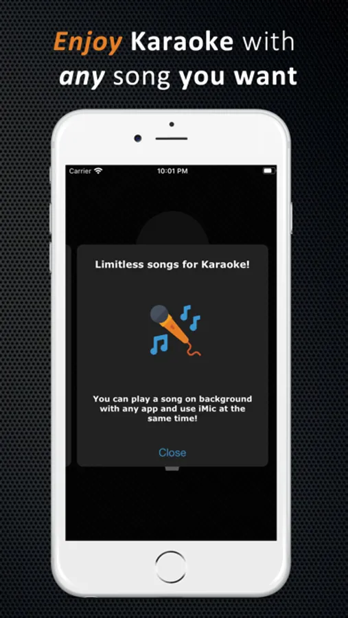 • You can also enjoy Karaoke by playing a song with any application you want on the background