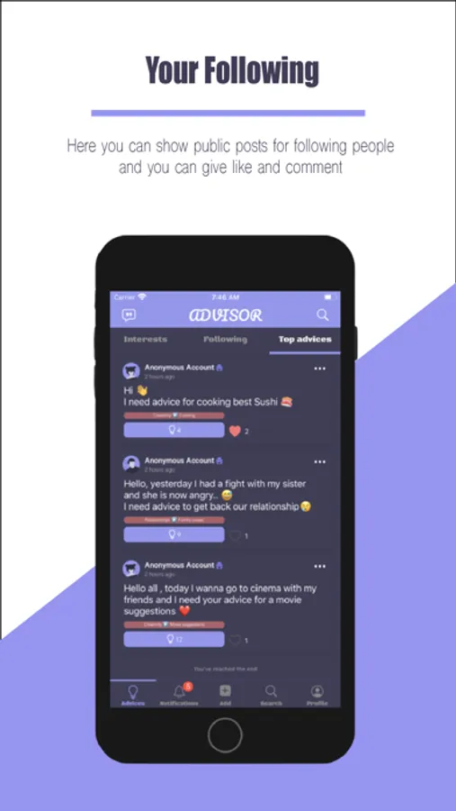6- You can add your advice as a Openly comment and anyone can see your profile.
