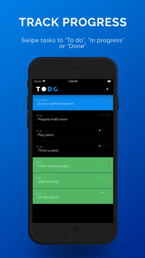 Create you own to do list. Create tasks, set priorities and track progress. Easy, interactive & simple. Less is more.