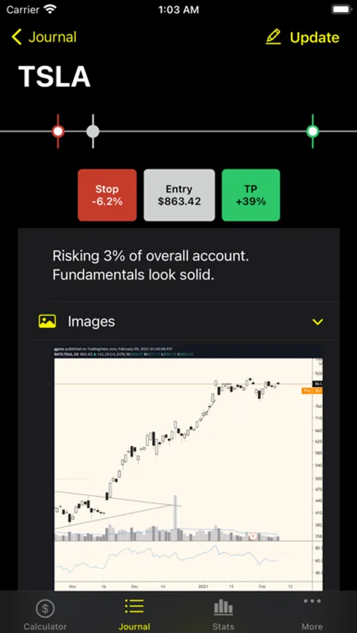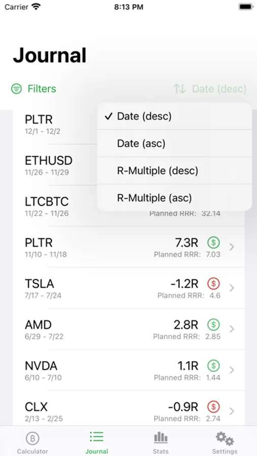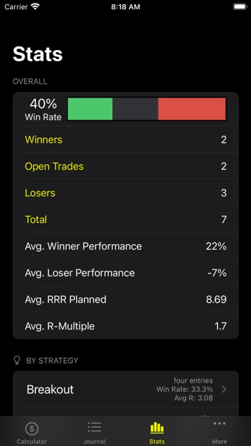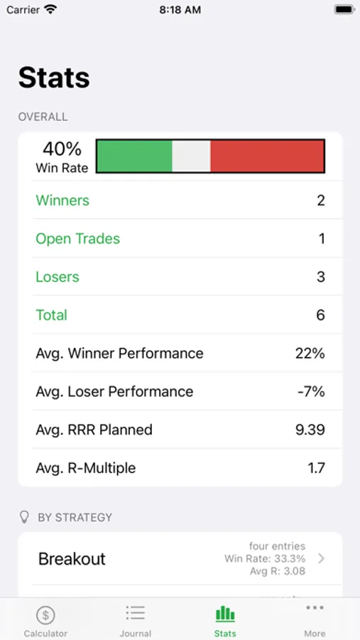 Be your own trading coach and learn from your trades with this no-nonsense trading journal. Use the risk calculator to size your trades appropriately. Review trading statistics such as planned risk/reward ratios, r-multiples, win rates, and more for your entire journal or broken down by trading strategy. Extract the alpha hidden in your trades!