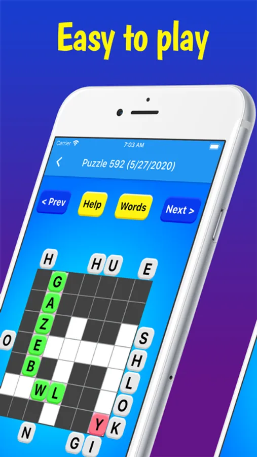 Instead of clues, slide the letters onto the grid to build up the words, and complete the crossword.