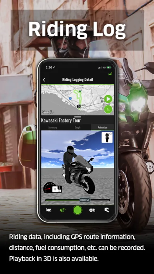 This function enables you to enjoy riding log recorded on the APP in 3D by yourself, family and friends.