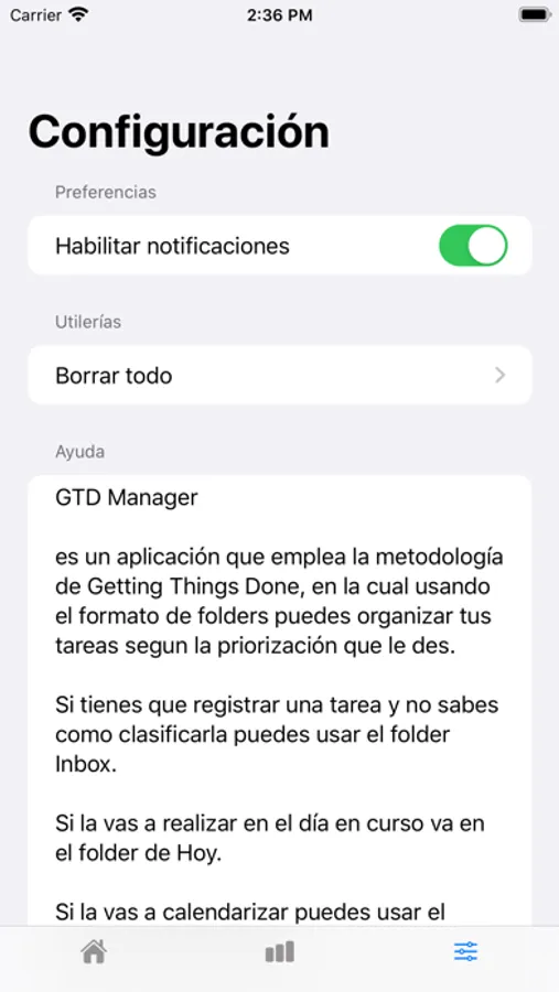 GTD Manager es una aplicación desarrollada para que organices tus tareas empleando la metodología de "Getting Things Done" en la cual haciendo uso de los distintos "Folders" puedas organizarte de la mejor manera