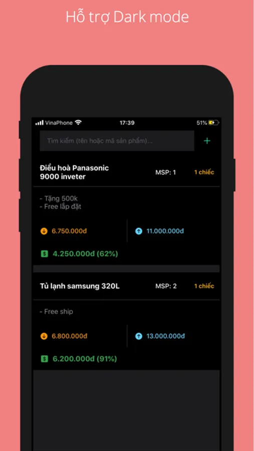 - Quản lý giá nhập, giá bán và phần trăm lợi nhuận