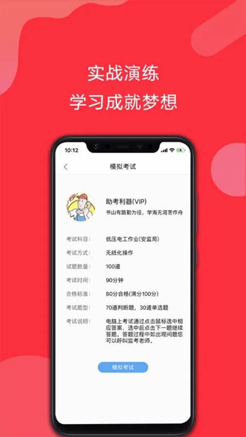电工考试助手是一个针对全国电工专业人员专业技术资格与上岗证考试的题库,包含了低压电工作业、高压电工作业、电力电缆作业、继电保护作业、电器实验作业、防爆电器作业、初级电工证、中级电工证、高级电工证、技师证等考试大纲所确定的范围。