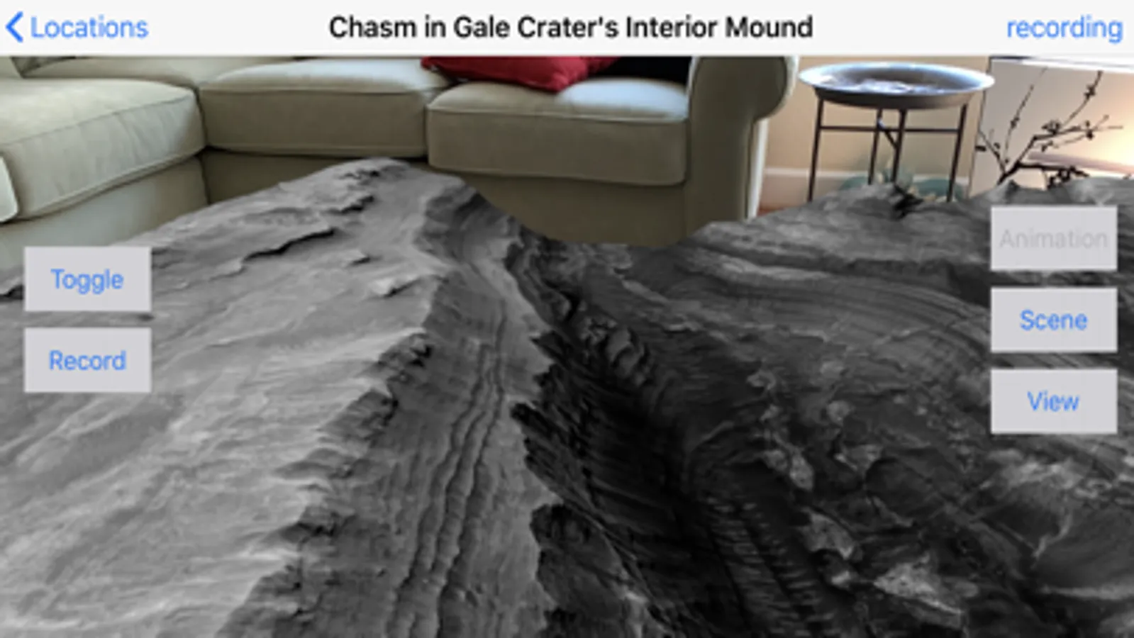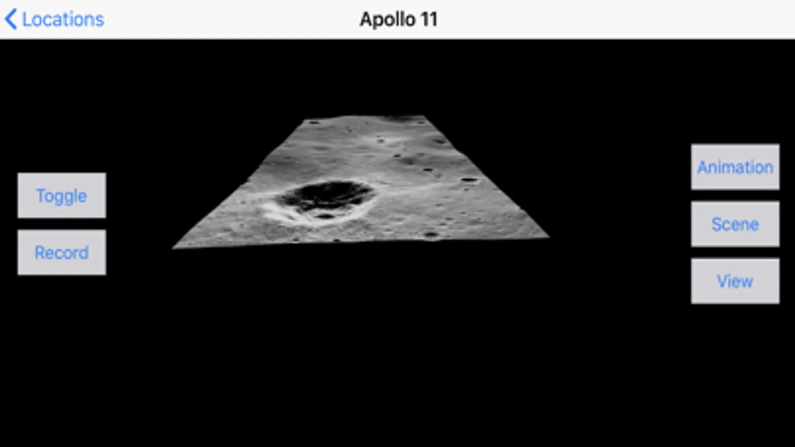 Listen to and watch the last few minutes of Neil Armstrong and Buzz Aldrin's historic landing on the Moon. Watch from above in AR mode or jump into the scene in VR mode from several locations around the surface or from Eagle’s actual location as it flies to Tranquility Base.