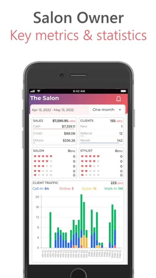 Complete overview of your salon business from your mobile phone on the go.