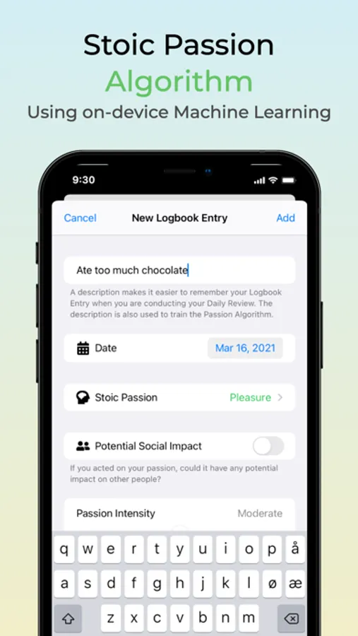 • Stoic Passion Algorithm: Stoicus use on-device machine learning to suggest Stoic passions based on your input.