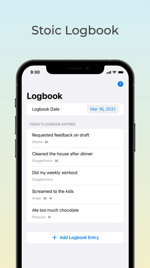When you conduct the Stoic routine of Daily Reviews, the Logbook makes it easier to remember your day.