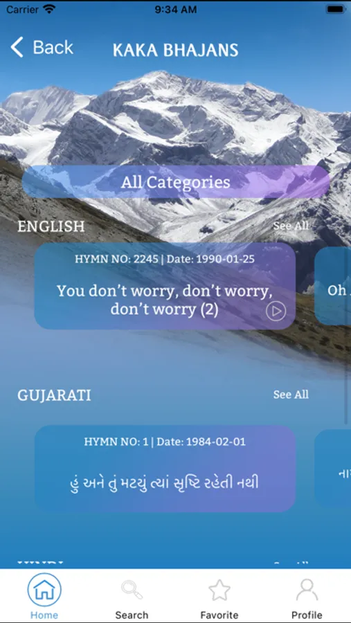 The app has bhajans in Gujarati, Hindi, Marathi & English.
