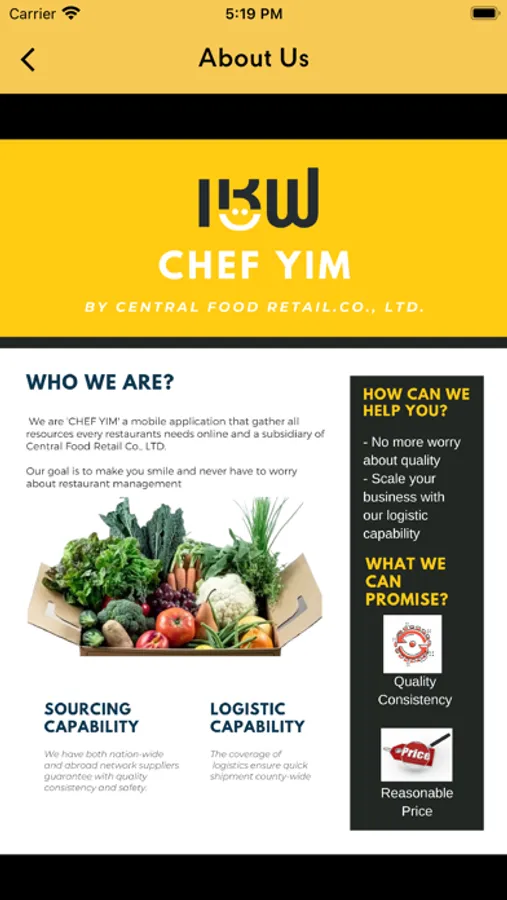 We are a one-stop service for restaurants on E-commerce platform offering high-quality ingredients, store supplies, and services. Through sourcing, supply chain, and technology capabilities of Central Food Retail, the quality, price, and customers' satisfaction are our priority.