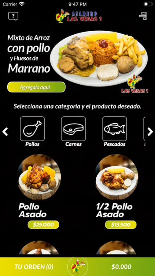 Asadero Las Vegas 1, Herederos de una tradiciòn, ahora conocer nuestro menú y realizar tus ordenes, sera mucho mas facil, Descarga nuestra App y haz tu orden en segundos. En nuestro menú encontrarás: Pollos, Carnes, Pescados y bebidas.