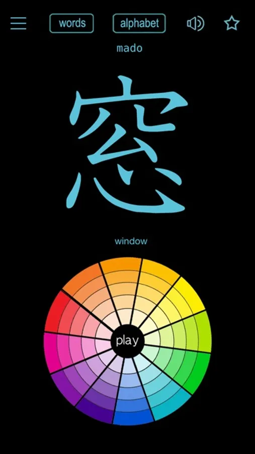 Click on the "alphabet" button in the menu bar, you can get the sound elements of the Japanese language.