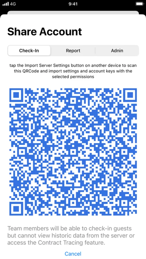 - check-in guests to one of four areas by scanning a compatible QRCode