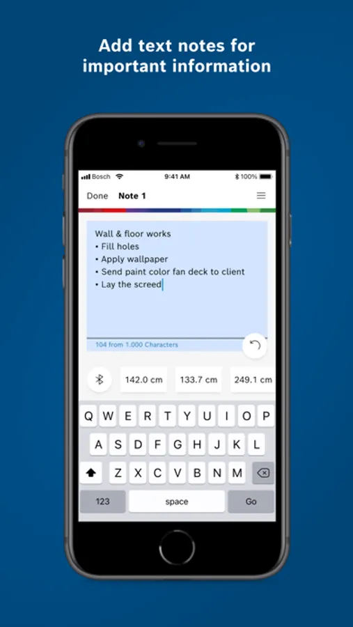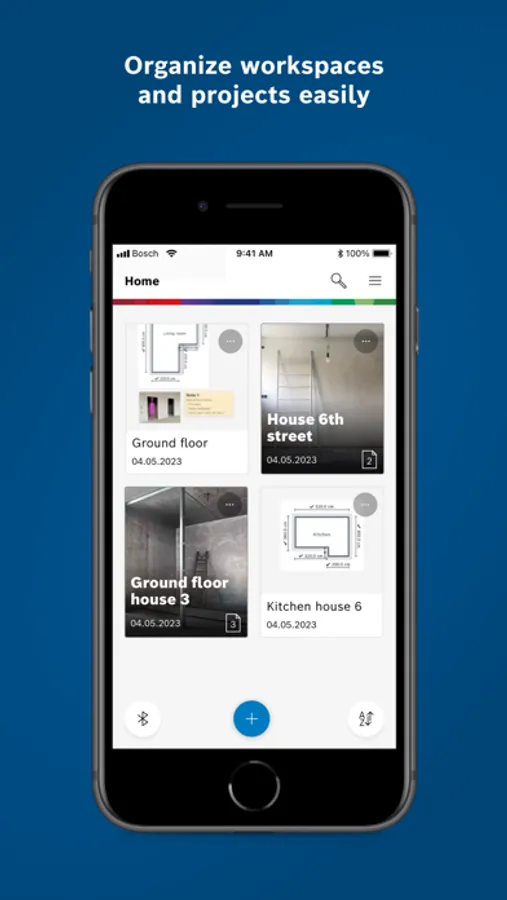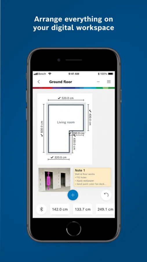 Save all information in one place: Bosch MeasureOn by Bosch Measuring Tools is your app for easy on-site documentation of floor plans, measurements, photos, and notes. With cloud-based* project access anywhere on all devices – on the construction site, at the office, on the move, or at home.