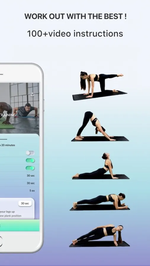 Arm or leg exercises won’t be effective unless you do them correctly. In our app, we selected video instructions made by the best fitness coaches, to make sure that you train every muscle group correctly at home.
