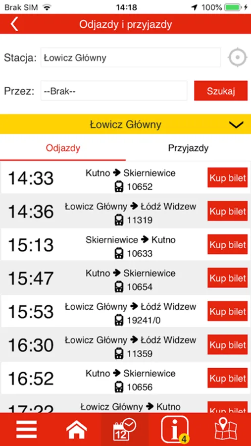 Mobilna wersja rozkładu jazdy pociągów Łódzkiej Kolei Aglomeracyjnej.