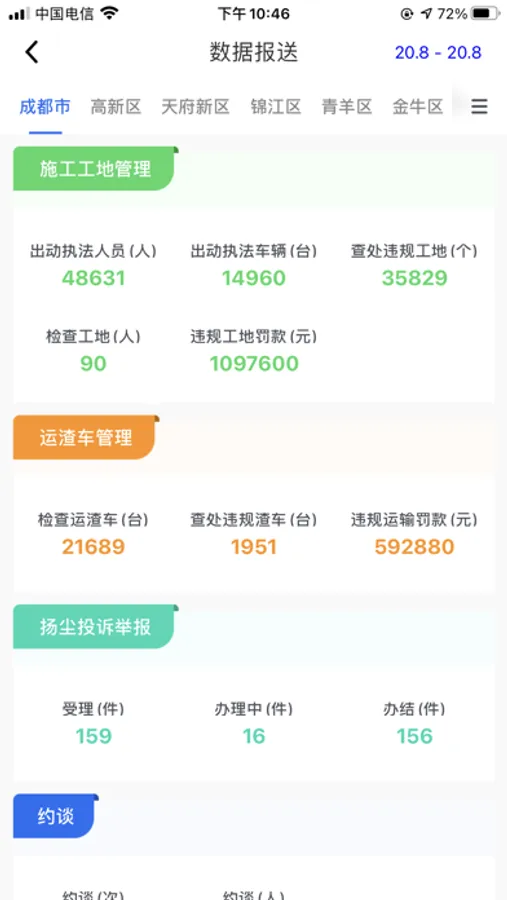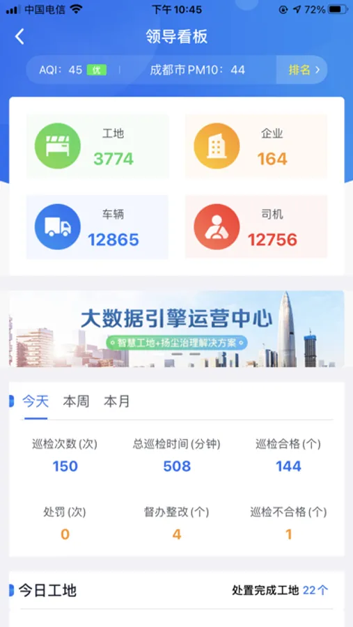 3、提供工地管理功能,实现工地工期、工地位置、占地面积的准确、及时更新,为工地不同阶段的精细化管理提供数据依据。