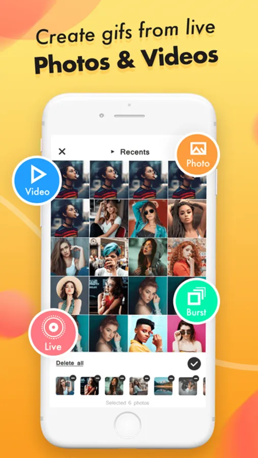 Create funny GIFs with this best GIF maker. You just need to choose the best option you like. Customize your GIFs from your photos, videos or live photos. Get ready to play with 100% COOL GIF.