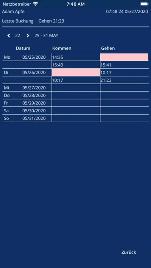 ‣ Zeiten in Form von Kommen Gehen Daten