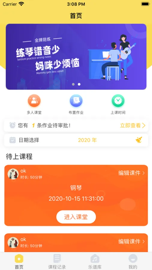 金牌课堂,真人视频1对1在线陪练,专门解决学生练琴过程中遇到的音准,节奏等问题。通过专业陪练老师在线视频教学,提高学生学习效率,使练琴不再乏味无趣。 学生可以在线随时约课,专属课程顾问提供贴心的服务,同时,所有陪练老师均具备过硬的专业素养,再经过严格的培训与考核,最终服务于广大学琴童。并根据每位琴童的不同程度和性格,进行定制化教学,从而能够更加有效的把控练习进度。 同时,金牌课堂APP也为用户提供海量的乐谱,专业节拍器等练琴工具。使学生在专业的学琴之路上能够一路前行!