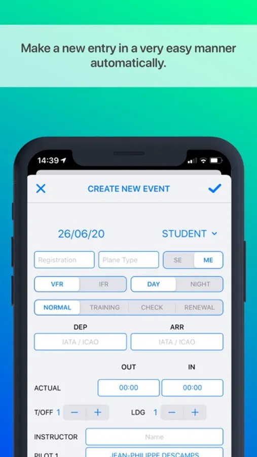 Log each of your flights in a very easy manner: wether it's a training flight or a regular flight.