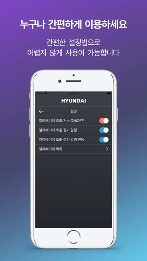 스마트폰 블루투스를 활용하여 터치 없이 편하고 위생적으로 엘리베이터를 통과한다는 의미를 가진 현대엘리베이터의 모바일 앱
