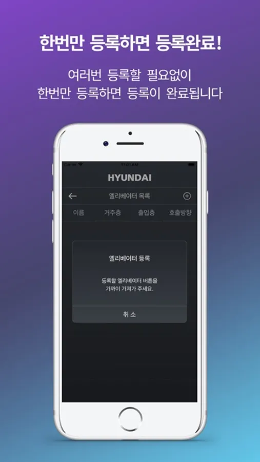 앱 실행 상태에서, HIP/HPB에 태깅 하여 버튼 터치 없이 엘리베이터를 호출