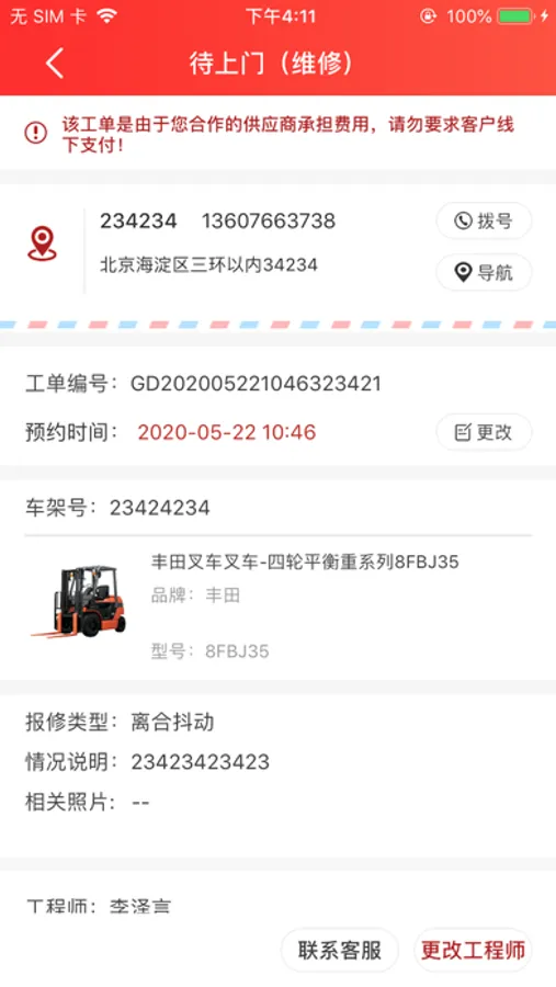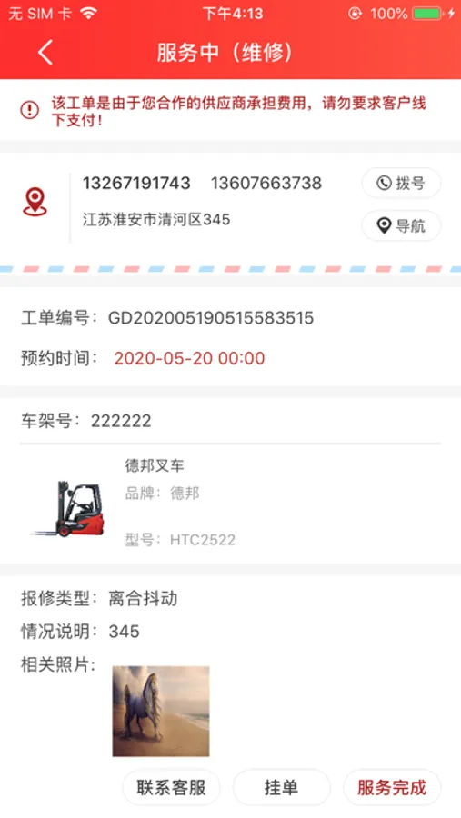 【工单】 工单到达,开始上门服务,上传工单进度截至到服务完成