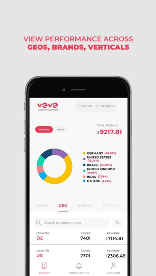 VEVE app is built for publishers to avail instant access to traffic performance data for all their accounts.