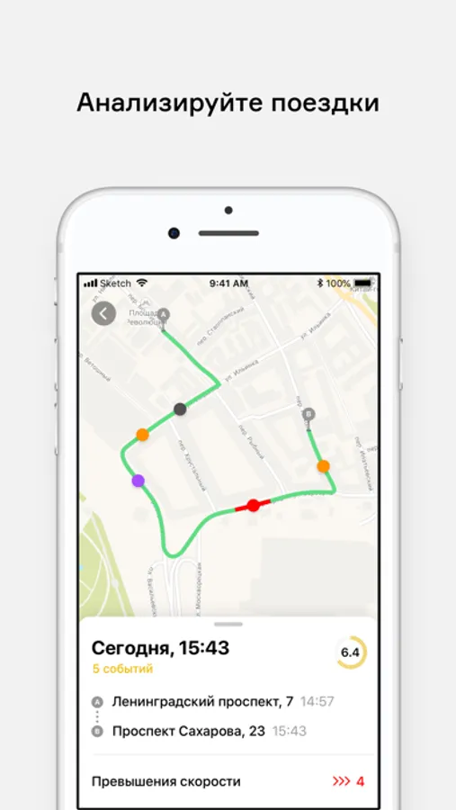 Получайте обратную связь о манере своего вождения в понятном и интуитивном интерфейсе: чем выше ваша оценка, тем ниже стоимость полиса КАСКО;