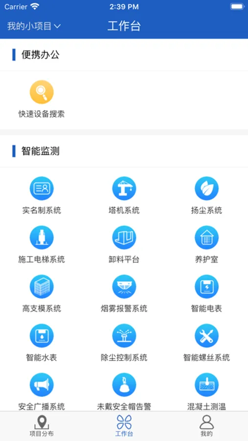 在互联网、大数据、物联网技术基础上构建的工地在线管理系统,实现智慧化建筑,集环境监测、塔机安全、升降机安全、料台监控、实名制、智能电表等多种物联网设备一体的综合管理系统。