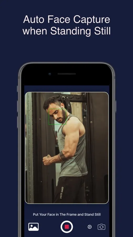 The solution: let Wingman Camera take photos for you. Start auto face capture, put yourself in the frame, stand still, and the app will automatically take photos for you. You can keep changing poses, and it will keep taking photos, like on a photo session.