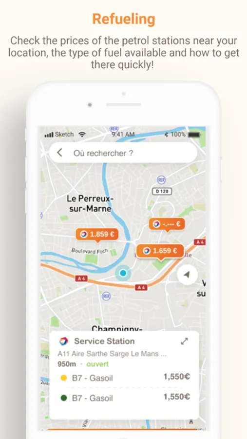 - Fuel: view all the stations near your location as well as the prices charged and information on the station and the services available.