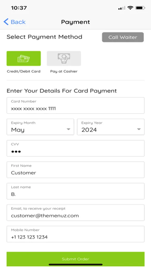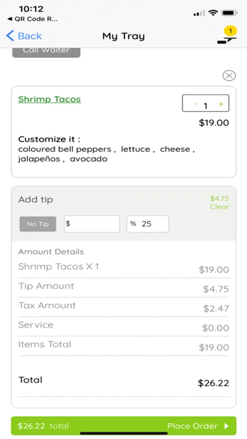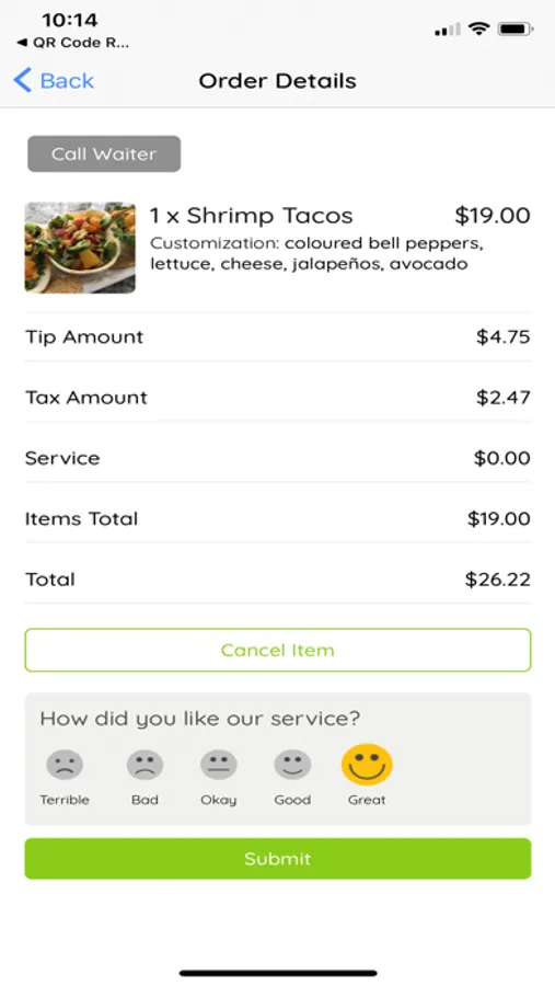 As dining in customer, all you'll need to do is install our app, scan QR code on your table, browse menu, customize and place your order, pay, add tip, receive your bill by email, rate the service, and call server if needed.