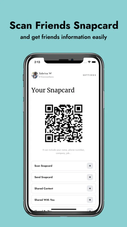 • Scanning Snapcard's is easy! Tap to scan a Snapcard, and connect with your friend without spending time!