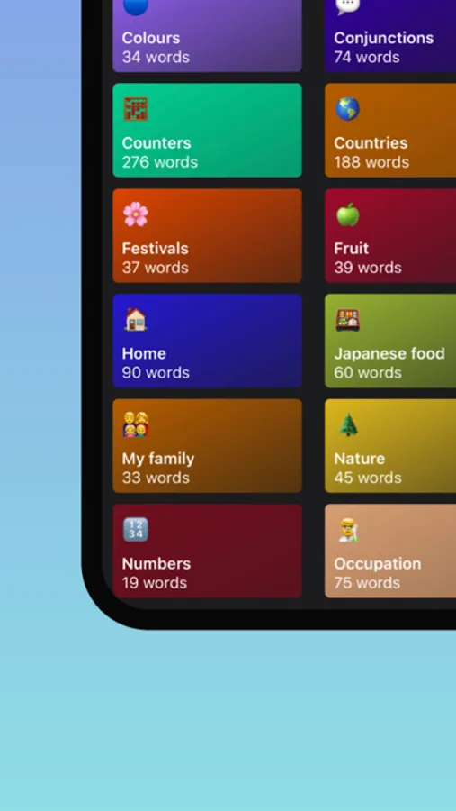 - Widgets to immerse in your studies with a constant rotation of Japanese words and definitions