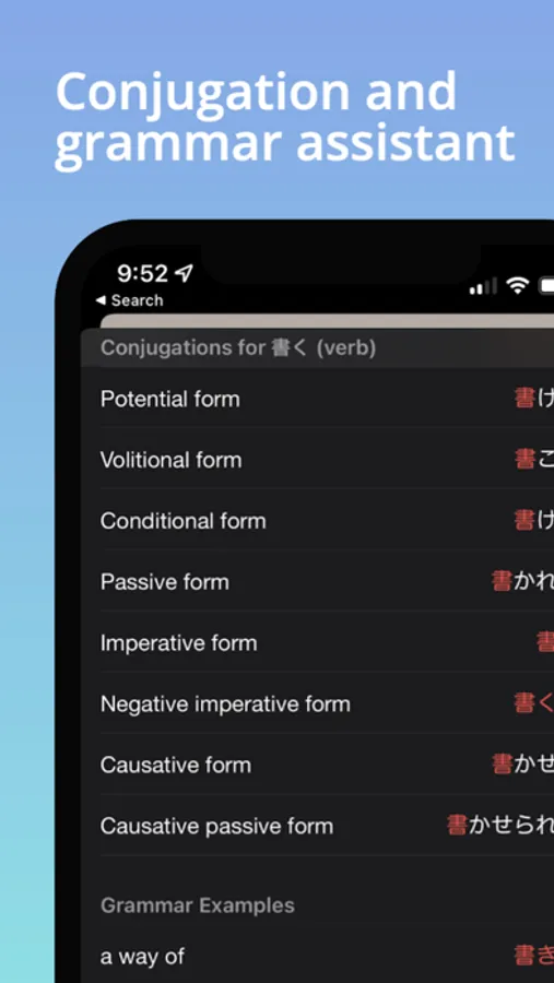 Kaku is a Japanese learning app aimed at beginner-to-intermediate learners. It helps them with sentence structure/formation by combining a number of tools into one app: