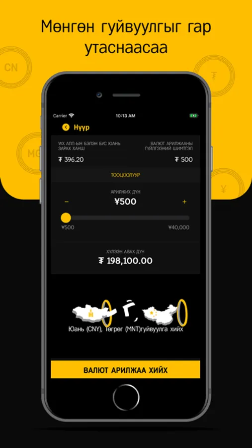 Та Хятад улс руу мөнгөн гуйвуулга хийх, валют арилжаа хийхэд манай аппликейшнийг ашиглах бүрэн боломжтой.