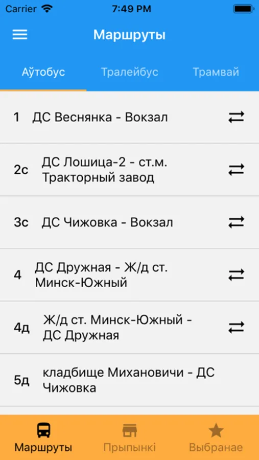 Теперь всегда можно узнать актуальное расписание транспорта в Вашем городе, даже без доступа к интернету.