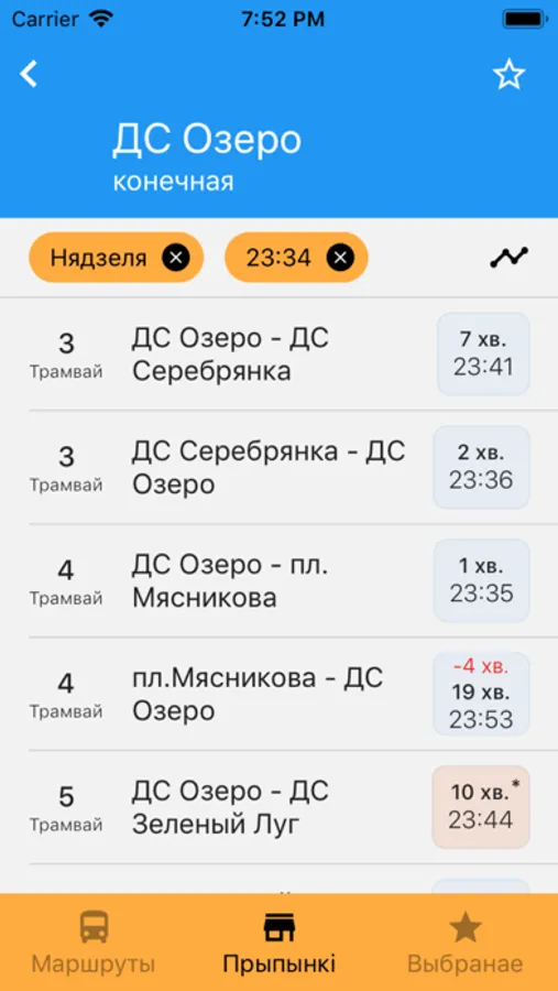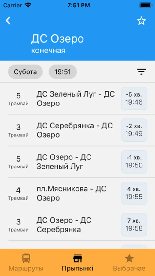 - Просмотр расписания на остановке с возможностью сортировки по времени и по номеру транспорта;