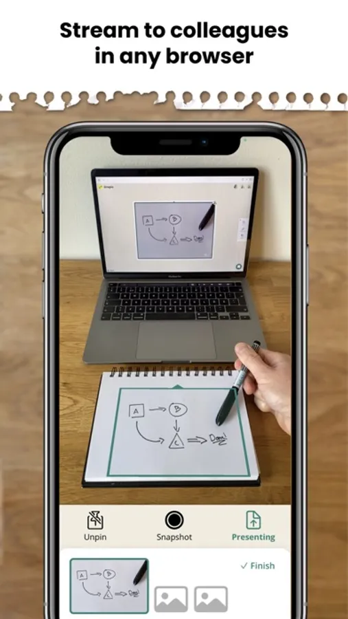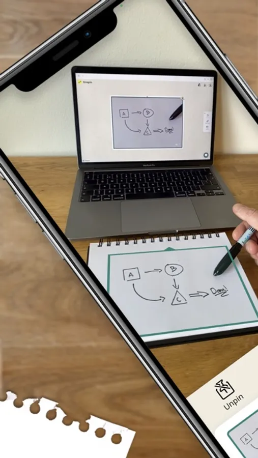 Use the Grapic app to share a video stream of your notebook or whiteboard to your remote colleagues. No need for a camera tripod or expensive equipment - our augmented reality and computer vision tech keeps the video steady so you can focus on what you're drawing.