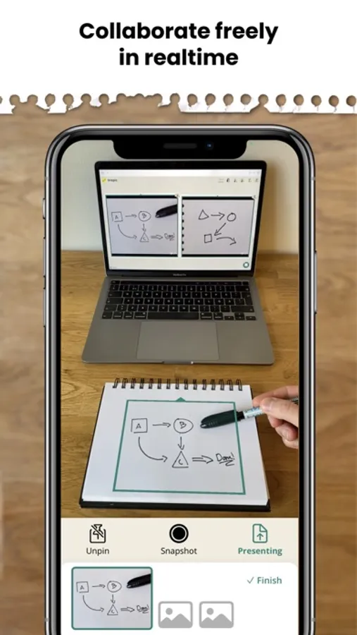 Use real pen and paper, sticky notes, and whiteboards, live with your remote colleagues and clients: