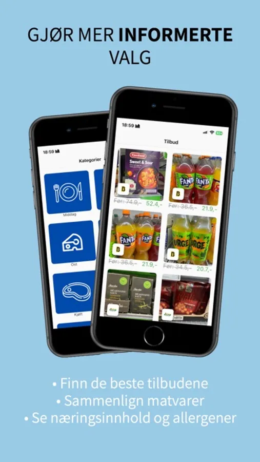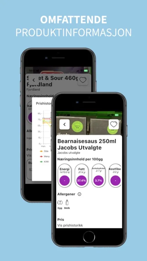 Sammenlign matvarer basert på pris, næringsinnhold, allergener, samt dine og andre brukere sine anmeldelser.