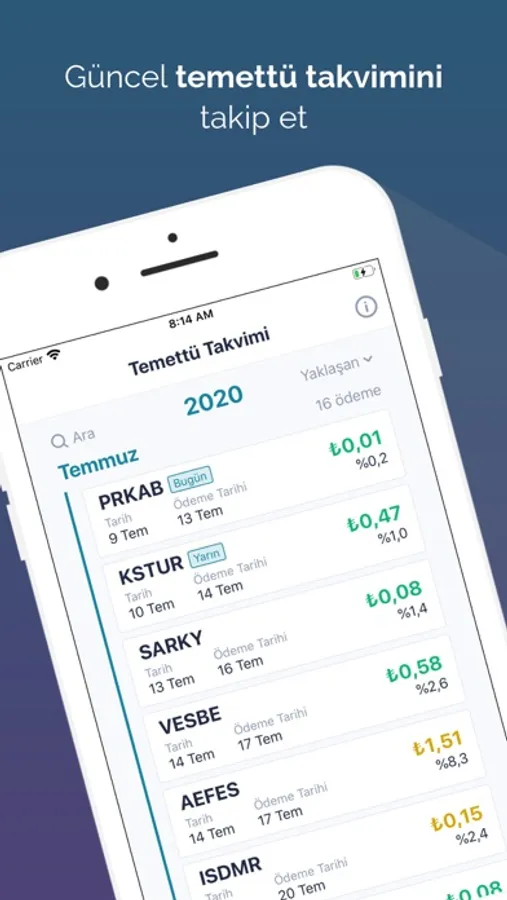 Temettü, güncel temettü takvimini ve temettü hisselerinin geçmiş yıllara ait verilerini takip etmenizi kolaylaştırmak amacıyla oluşturulmuş bir uygulamadır.