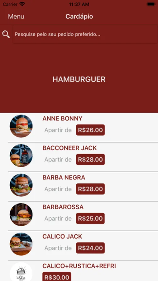 Aplicativo voltado para a venda de hambúrgueres e bebidas, tanto no delivery, como retiradas no balcão. Sem o pagamento online.